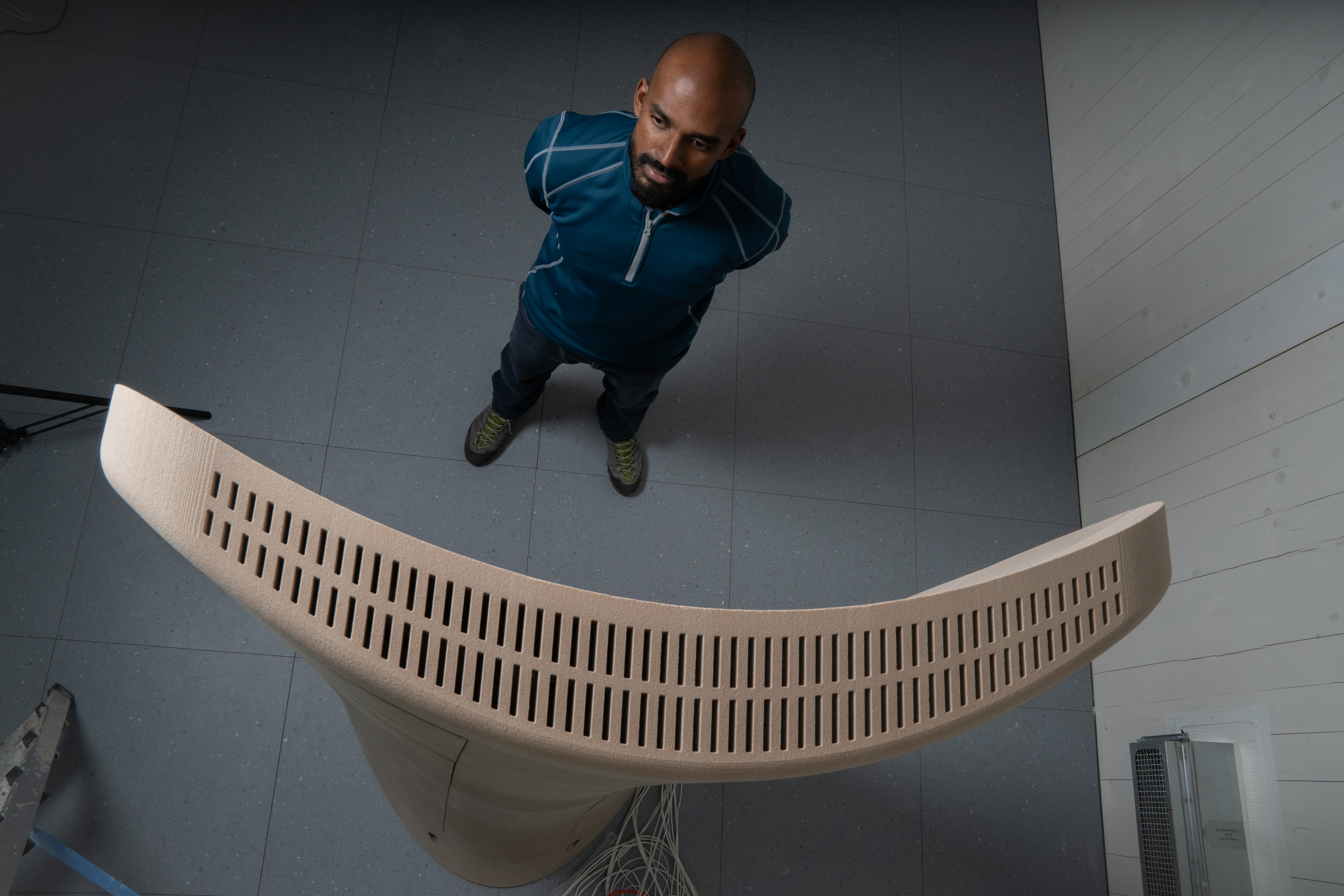 “Trunkscape” showcases 96 Courrier Lozine 90 trunks assembled into an arch, emphasizing Louis Vuitton’s craftsmanship.
