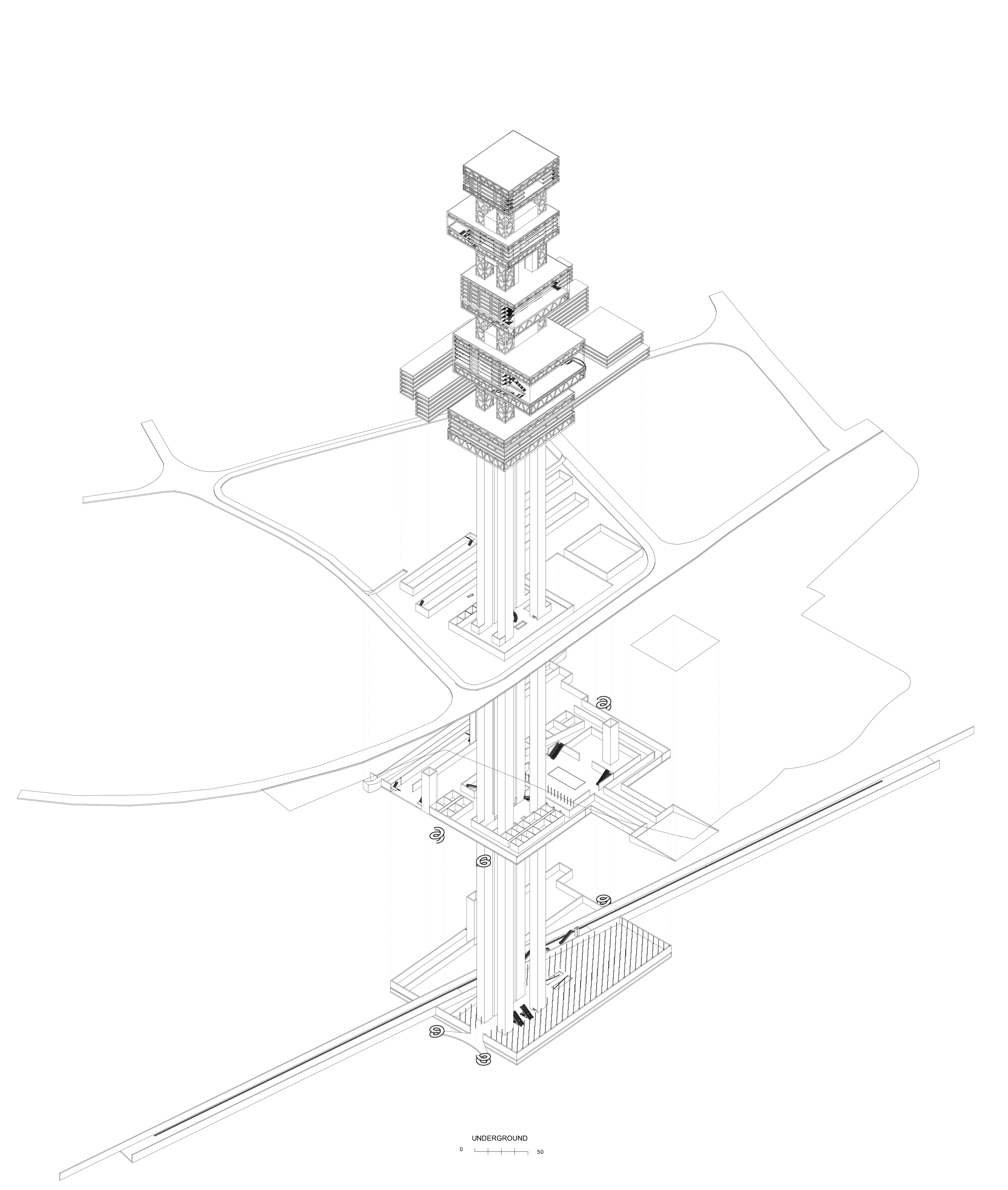 The construction area is located in the newly developed Shenzhen Leisure Belt Park. A horizontally arrangment of the required program would take up the majority of the park area and will thus become an obstacle in the continuity of the Leisure Belt Park. In cities like Shenzhen, it is essential to think carefully about how public space and the natural landscape can be integrated into the dense city fabric.